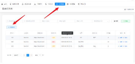 每款App都可以创建使用分流链接,使用分流链接给账号营销使用,实时查看点击状况,