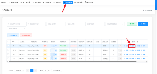 点击创建分流链接 , 完成相关设置