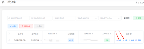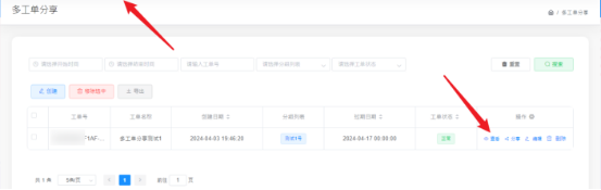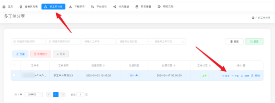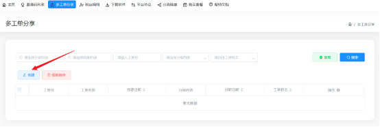 3. 多工单分享页面 点击 创建 输入图片以下信息