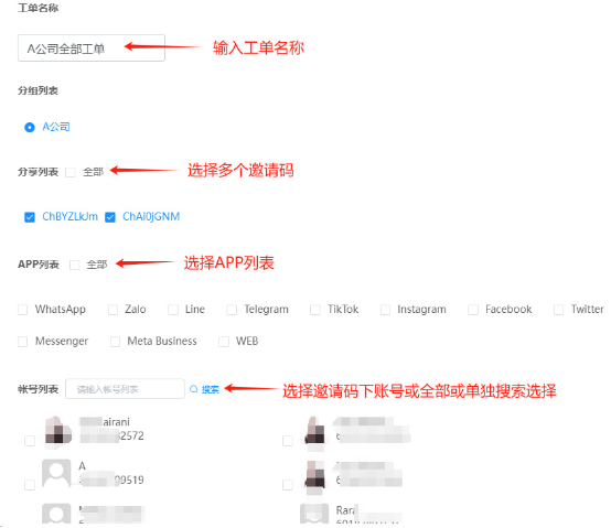 A工单有账号和B工单有账号都需要分享给其他人,但是不想分享给他们其他账号